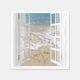 Ocean beach hearts in sand with open white window view and sheer curtains.