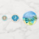 Enhance your wedding reception tables with this bright, joyful design featuring white and golden sand beaches and blue skies enhanced by bokeh lights, decorated with emerald gemstone jewellery, turquoise bow, seashells and fresh palm tree leaves. Your favourite Instagram couple photo is featured under a round frame with shiny gold band. Perfect for beach weddings, destination weddings, tropical weddings, island weddings, summer weddings and other sea-related venues. Please visit the collection to see the entire suite. (IMPORTANT NOTE: This design is not made of real gemstone or fabric. All elements are digital graphics or photos and printed on a flat surface.)