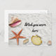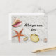 This travel or vacation postcard features a photo of a white sandy beach and seashells. Personalise this postcard with your own text.