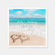 Beautiful napkin that features a beach scene with two hearts drawn on the sand. This napkin is perfect for a summer or beach theme wedding. The inviting picture sets a cosy and welcoming tone for your special day. It is the perfect napkin for an ocean front or a destination wedding reception.