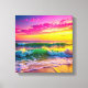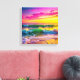 Beach with Yellow and Pink Ocean Waves Vibrant Canvas Print