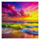 Beach with Yellow and Pink Ocean Waves Vibrant Poster