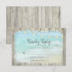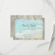 These are the matching RSVP cards for the Rustic Beach Wood Wedding Invitations. String Lights decorate the top of the card, with a picture of ocean waves crashing against the beach in the background, framed with weathered wood.