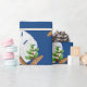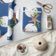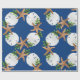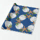 Quality Christmas wrapping paper on a roll with starfish and sand dollars "beach wreath" design. This large image is printed over an navy blue background colour, with seashells and holly in brown, white and green making a circular wreath pattern. If you don't see a background colour you like, you may choose your own in the "customise further" area.