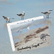 Seagulls at the seashore could be combing any beach, but these gulls are from Hollywood Beach Florida as is this postcard. One seabird is combing the sandy beach while another is flying low in the distance. All images are original photography by JLW_PHOTOGRAPHY.