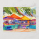 Colourful market stalls under beachfront palm trees are the subject of this beautiful digital watercolor art postcard.