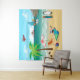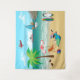 Bring the sunny shores to your living space with our Beachside Fun Tapestry. This captivating tapestry features a charming cartoon illustration of a beach scene, complete with two kids sailing towards the shore, a mum enjoying the sun with her laptop, playful ducks, a flying pilot, and a cruising ship. Hang this tapestry on your wall and transport yourself to a relaxing beach getaway.