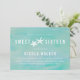 Choose these watercolor sweet sixteen invitations for a beachy, breezy vibe. Design features a pale turquoise watercolor wash background with two starfish illustrations and white lettering in block and italic fonts.