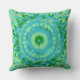Throw pillow designed with beach colours of green and blue using a clay art pattern.