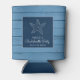 Cute can coolers for a beach-themed bachelorette party getaway in a rustic blue wood with starfish design. Customise with the bride-to-be's name and the location of your bachelorette party, weekend or getaway.