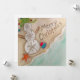Sand dollars form a Sandyman on the shore with, "Merry Christmas," written in the sand. Add your own message on the front in the water area.