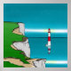 This illustration is a colourful picture of Beachy Head and the lighthouse alone in the English Channel.