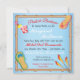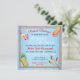 Pretty and tropical poolside bridal shower Luncheon for the bride to be. Features a tropical cocktail, sandals, tiki torches and a bamboo frame against blue pool water. Hand drawn illustration by McBooboo.