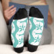 Beachy aqua blue socks printed all over with summery white sand dollar sea shells pattern