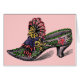 Black and white drawing of a Victorian shoe with colourful beads