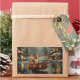 Set sail into the magic of the holiday season with this beautifully detailed illustration, showcasing a proud dog sitting in a festively decorated boat, gliding across a serene Christmas lake. The twinkling lights from nearby pine trees reflect off the water, casting a warm, festive glow that enhances the cosy ambiance. Ornaments dangle from the boat's sides, while glowing lanterns light the way, creating a scene that captures the true essence of Christmas warmth and joy. This nostalgic artwork brings a touch of holiday magic to any space, perfect for those who cherish the spirit of the season.