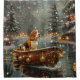 Set sail into the magic of the holiday season with this beautifully detailed illustration, showcasing a proud dog sitting in a festively decorated boat, gliding across a serene Christmas lake. The twinkling lights from nearby pine trees reflect off the water, casting a warm, festive glow that enhances the cosy ambiance. Ornaments dangle from the boat's sides, while glowing lanterns light the way, creating a scene that captures the true essence of Christmas warmth and joy. This nostalgic artwork brings a touch of holiday magic to any space, perfect for those who cherish the spirit of the season.