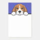 Cute Beagle post-it notes for dog lovers, with a cute Beagle puppy peeking over a ledge and a blank space for notes or scribbles below. A fun home or office gift for any Beagle dog owner, dog mum, dog dad, trainer, veterinarian or dog lover.