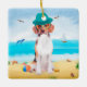 A Beagle dog sitting on beach is a perfect gift idea for someone who love this dog breed.
