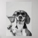 Beagle Holding A Cocktail Wall Art, Black and Whit Poster