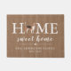 Personalised home sweet home door mat featuring a Beagle dog, with your family name & year established, set on a brown burlap look background