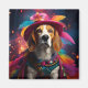 A playful Beagle dressed in a vibrant, whimsical costume against a glowing, magical backdrop. This enchanting design is perfect for animal lovers.