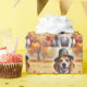 A watercolor-style painting of a cheerful dog sitting amidst a pile of vibrant fall leaves, surrounded by tiny pumpkins and scattered acorns. The dog wears a little pilgrim hat and beams with joy, capturing the spirit of Thanksgiving. In the background, soft harvest fields and golden-hued trees create a peaceful countryside ambiance. Gentle textures and warm, muted autumn tones give the scene a cosy, nostalgic feel perfect for celebrating the beauty of the season.
