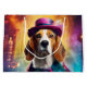 A playful Beagle dressed in a vibrant, whimsical costume against a glowing, magical backdrop. This enchanting design is perfect for animal lovers.
