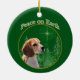 Peace on Earth. Show your reason for the season with your Beagle in this unique dog design accented with green and gold. Goes great on an ornament, greeting card or sticker.