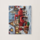 Beagle Puppies Red Truck Christmas Snow Scene Jigsaw Puzzle