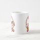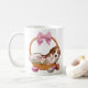 Cute beagle puppy in basket with big bow and macaroons, painted by artist Maryline Cazenave.