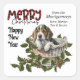 This Holiday sticker features an adorable Beagle puppy sitting in a wicker basket with green holly and red berries surrounding it. Buffalo plaid typography pairs with black script to say "MERRY Christmas", with "Happy New Year" below that. Your custom signature is in two easy to change text fields. Cute for your Holiday correspondence.