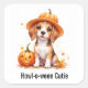 Beagle Puppy in Pumpkin Hat Halloween Watercolor Square Sticker
