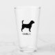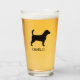 Enjoy a pint of your favourite cold beverage out of this unique 16 oz drinking glass. Beagle silhouette with custom text for your name or slogan. Makes a fun personalised gift. Visit Jenn's Doodle World for more custom drinkware and dog breed designs.