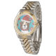 The personalization and the photo print on the face was perfect. However, I bought this as it was listed under women's...but, it came the same size as the men's watch that ordered. I called Zazzle. They were very understanding and more than willing to make me a happy customer...Explained that I should order a children's size, an then told me to keep this watch for no charge. And also since I bought the watches in a 50% off sale, they gave me a code to use for that same price for the watch I will buy to replace this one. I am VERY impressed with the customer service..and their willingness to accommodate my issue. I can say that I will be a return customer! The printing and the photo are perfect! Very clear!
