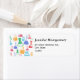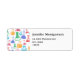 Address labels with a fun and colourful pattern. Research scientist vibe with beakers and flasks of different shapes and sizes in bright happy colours.