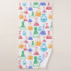 Towel set with a fun and colourful pattern. Research scientist vibe with beakers and flasks of different shapes and sizes in bright happy colours.