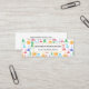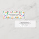 Mini business cards with a fun and colourful pattern. Research scientist vibe with beakers and flasks of different shapes and sizes in bright happy colours.