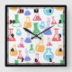 Beakers and Flasks Fun Science Pattern Square Wall Clock