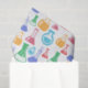 Patterned tissue paper with a fun and colourful pattern. Research scientist vibe with beakers and flasks of different shapes and sizes in bright happy colours.