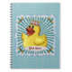 Beanie Rubber Duck journal notebook , matching yellow duck t-shirts, funny duck apparel, custom duck gifts by ArtMuvz Illustration. Rubber Ducks are fun, and the perfect gift for any occasion and are sure to bring a smile to anyone's face. Whether you are looking for a gift for a child, an adult, or a collector, a rubber duck is the perfect choice. To personalise add your name or add text instead. Customise this rubber duck notebook to make it uniquely yours or to give as a personalised gift