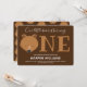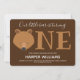Our little cub is turning one first baby birthday invitation. This invitation is brown with white. The word "One" in large letters with a bear face illustration as the first letter of the word. Simply, customise this invitation, add it to your cart, and happy birthday to your wonderful baby!