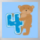 An adorable teddy bear with a big number to represent your child's age on 4th bear birthday T-shirts, bibs, buttons, bags, cards, stickers, keepsakes, and other bear 4th birthday apparel and gift items.
