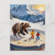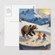 bear and kids ski in a bowl of porridge postcard