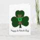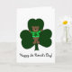 Say Happy St. Patrick's day with this cute bear standing in front of a large shamrock!