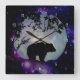 A bear silhouetted by a full moon in the universe, featuring a Native American-inspired wildlife design for a home decor clock.