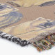 A quality printed throw has its advantages. This is a much finer weave throw than its loopier cousins, and though lighter, it is worth the investment for custom room accessorizing. The back is much prettier than the typical brown, and the fringe on the long sides very vivid, the selvage nicely done. Before photographing, I washed the throw in cold water, delicate, with a thicker woven throw the same size. On tumble dry low, this throw was dry in half the time as the other. This is a very practical quality if you use throws for furniture covers or to wrap up in frequently. The sleekness of the fabric makes it a great layer for accenting or protecting without the feeling of sitting on too much stuff. Perfect for napping or when you feel a light chill coming on. The color printing is beautiful and on this fabric, matched the design and color of my Photoshop image. This is an advantage for blending room fabrics and colors. The fringe on the short sides prints the colors from the design image and therefore varies from the side fringe. I streaked a white fractal line through the plaid pattern to give the illusion of weaving. This printed as crisp as an illusory thread, and put some white in the short side fringe, showing another advantage of print vs loomed- for artistic purposes, line lines, detail, and color integrity can be planned and preserved. My loomed throws have color limitations and more of a needlepoint texture. Print throws reproduce an exact image. The throw felt a little stiff straight out of the package, but this went away in the first delicate wash. Of course I searched the wash water for ink or bleeding and there was none.