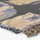 A quality printed throw has its advantages. This is a much finer weave throw than its loopier cousins, and though lighter, it is worth the investment for custom room accessorizing. The back is much prettier than the typical brown, and the fringe on the long sides very vivid, the selvage nicely done. Before photographing, I washed the throw in cold water, delicate, with a thicker woven throw the same size. On tumble dry low, this throw was dry in half the time as the other. This is a very practical quality if you use throws for furniture covers or to wrap up in frequently. The sleekness of the fabric makes it a great layer for accenting or protecting without the feeling of sitting on too much stuff. Perfect for napping or when you feel a light chill coming on. The color printing is beautiful and on this fabric, matched the design and color of my Photoshop image. This is an advantage for blending room fabrics and colors. The fringe on the short sides prints the colors from the design image and therefore varies from the side fringe. I streaked a white fractal line through the plaid pattern to give the illusion of weaving. This printed as crisp as an illusory thread, and put some white in the short side fringe, showing another advantage of print vs loomed- for artistic purposes, line lines, detail, and color integrity can be planned and preserved. My loomed throws have color limitations and more of a needlepoint texture. Print throws reproduce an exact image. The throw felt a little stiff straight out of the package, but this went away in the first delicate wash. Of course I searched the wash water for ink or bleeding and there was none.