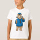 The t-shirt feels and looks great quality, a good thick cotton. It will be a little big for my son, but that means he will be able to wear it and not out grow it too soon. The print was as described on the order when personalised. True size, shape and colour T-shirt- thanks.