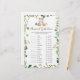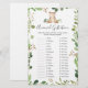 Bear themed baby shower animal gestation game card features a watercolor bear illustration and watercolor greenery eucalyptus garland and elegant handwritten style font.